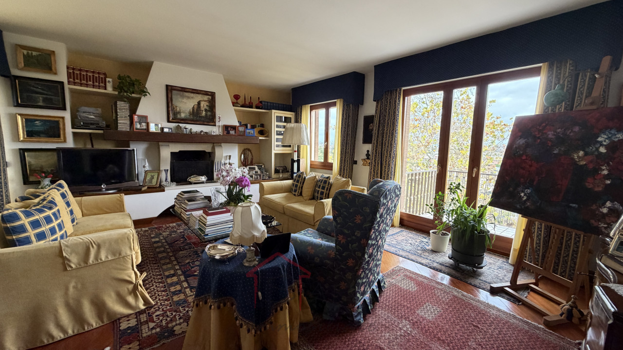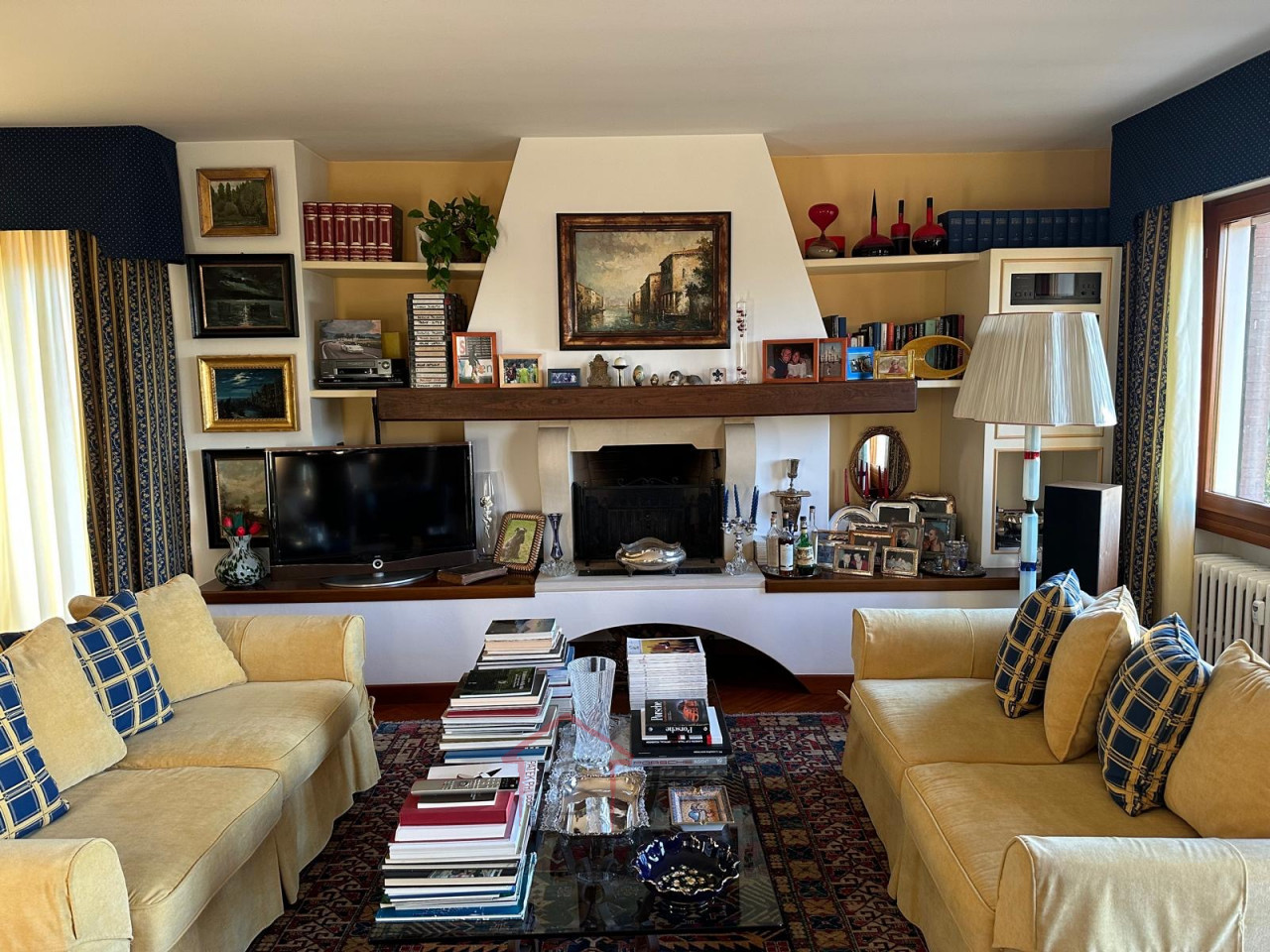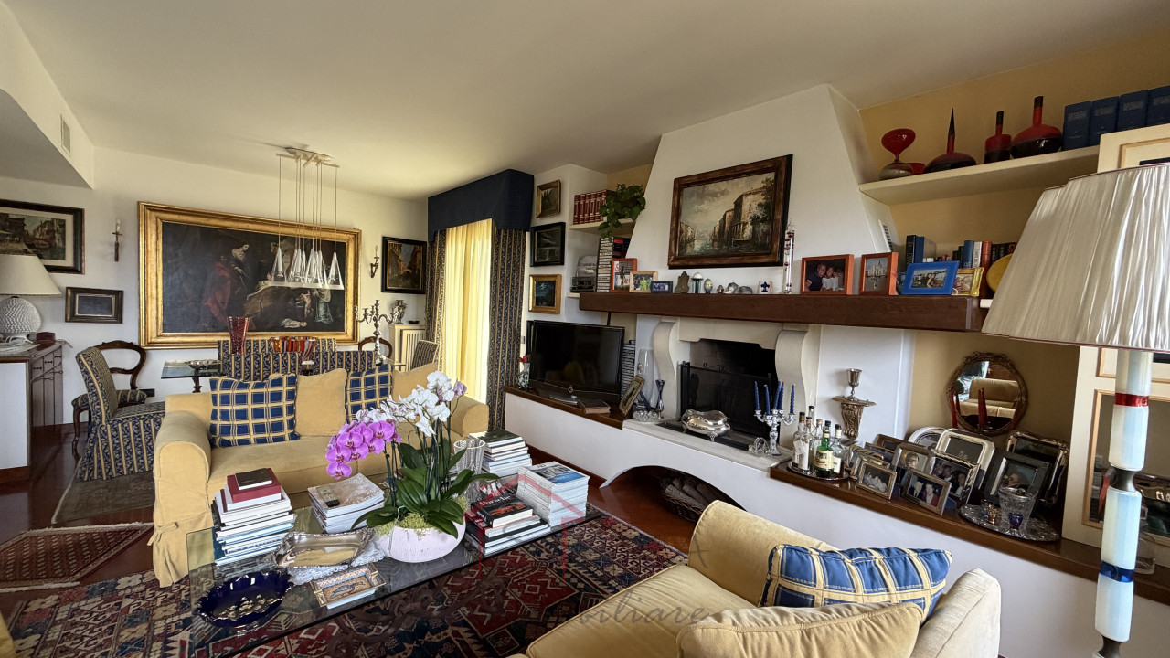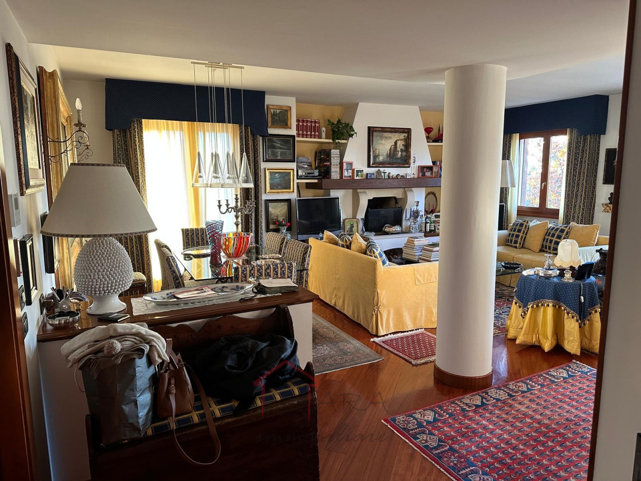 L’ingresso accoglie gli ospiti in un ambiente curato nei dettagli, impreziosito da pavimenti in legno pregiato e quadri d’autore. La zona living è ampia e raffinata, caratterizzata da uno splendido camino centrale perfetto nelle giornate più fredde; il soggiorno doppio permette diverse soluzioni d’arredo ed è collegato ad una sala da pranzo luminosa. Le finiture classiche unite alla presenza di numerosi punti luce naturali conferiscono calore ed eleganza agli ambienti.