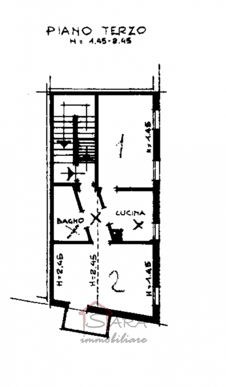 Appartamento mansardato LUMINOSO E PANORAMICO sito al quarto piano (non servito ascensore) disposto su due livelli composto da soggiorno con terrazzino, cucina, bagno con doccia e camera da letto, all’ultimo piano studio con terrazzo abitabile.